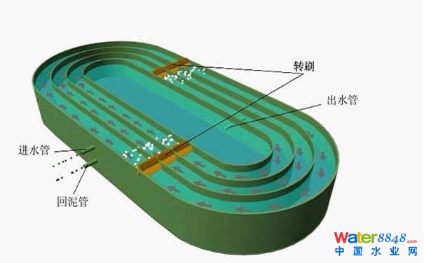 氧化溝工藝作為一種成熟的活性污泥污水處理工藝已在全國范圍內(nèi)得到廣泛應(yīng)用,它是活性污泥法的一種變型,其曝氣池呈封閉的溝渠型,所以它在水力流態(tài)上不同于傳統(tǒng)的活性污泥法,而是一種首尾相連的循環(huán)流曝氣溝渠,污水滲入其中得到凈化。