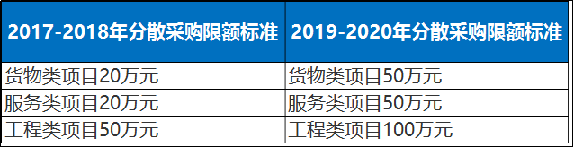分散采購限額標準從50萬元(含50萬元)調(diào)整為100萬元(含100萬元)。