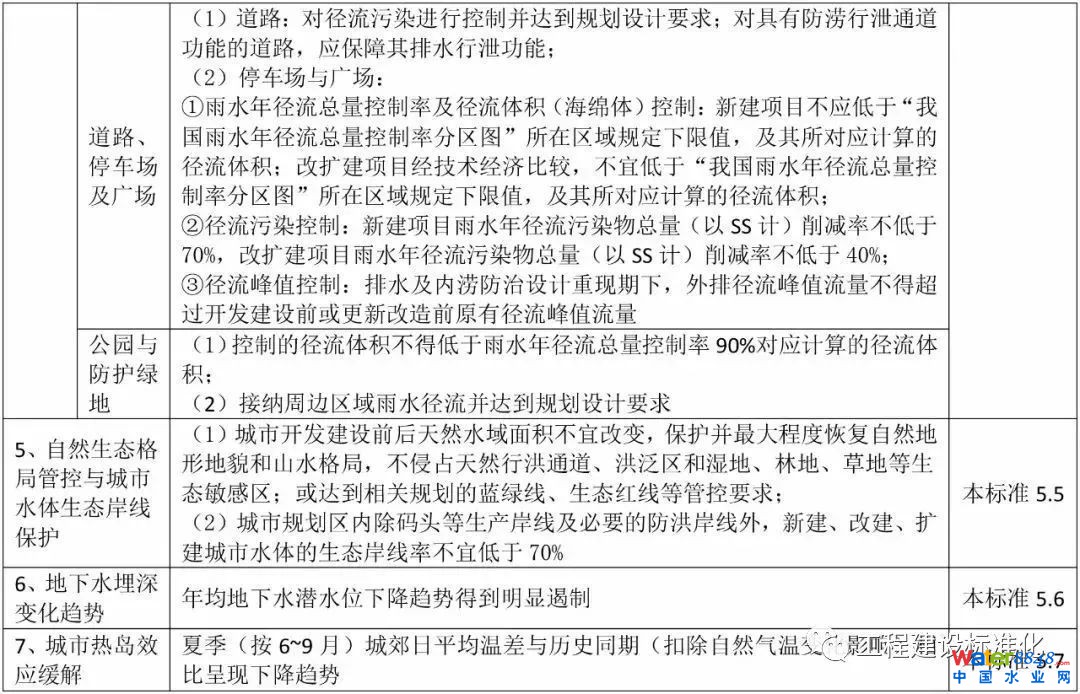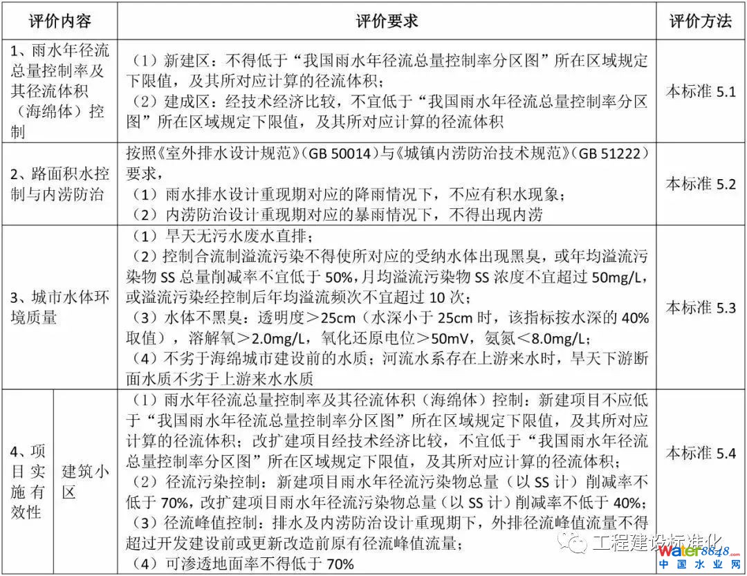 海綿城市建設效果從項目建設與實施的有效性、能否實現(xiàn)海綿效應等方面進行評價,具體評價內容及其評價要求見下表。“地下水埋深變化趨勢”、“城市熱島效應緩解”為考察內容,其他為考核內容。