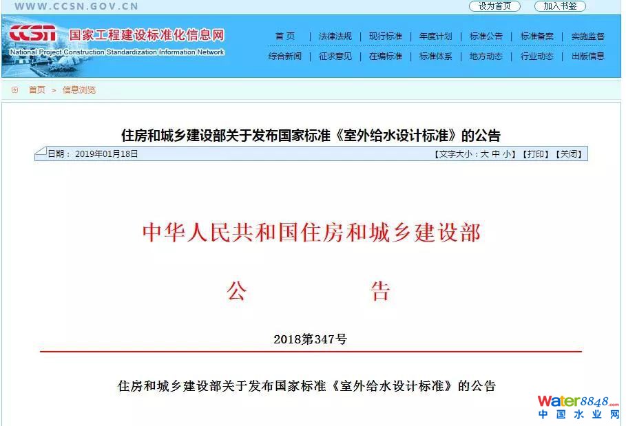 國家標(biāo)準(zhǔn)《室外給水設(shè)計標(biāo)準(zhǔn)》GB 50013-2018發(fā)布!