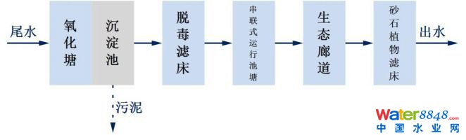 圖6 慈溪市域污水處理一期工程尾水濕地工藝流程