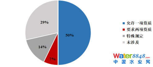 各省份對全過程工程咨詢單位資質(zhì)要求的規(guī)定比例圖