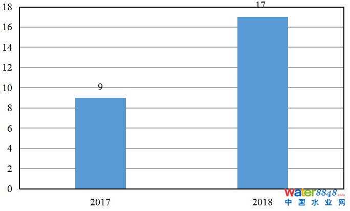 2018年,試點地方進一步擴大,全年全過程工程咨詢新增試點地區(qū)為:貴州、寧夏、山東、吉林、河南、安徽、內(nèi)蒙古以及陜西共8個省份,延續(xù)了全過程工程咨詢的熱度。2017年和2018年試點省份數(shù)量如圖1所示,除貴州和山東外均出臺了明確的實施方案或指導意見。截至2018年底,共計17個省份已開展全過程工程咨詢的試點工作,其中共14個地區(qū)公布了相關的試點方案或指導意見。