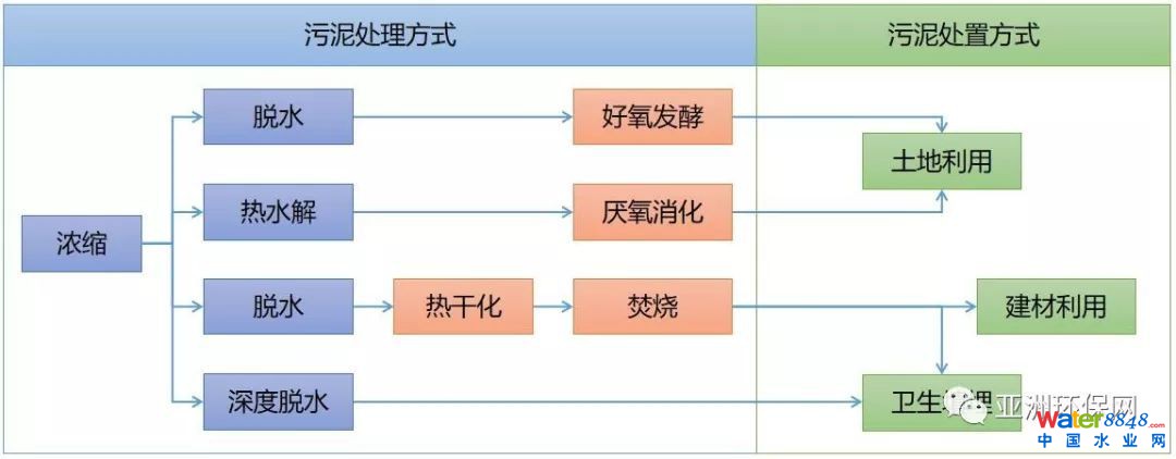 ● 土地利用為主:污泥穩(wěn)定化后以土地利用為處置方向,重金屬超標(biāo)污泥以建材和焚燒為處置方向;