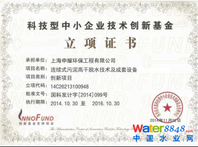 本項(xiàng)目采用的TJSD連續(xù)污泥深度脫水技術(shù)為同濟(jì)大學(xué)專家學(xué)者針對(duì)國(guó)內(nèi)污泥處理處置現(xiàn)狀及市場(chǎng)需求開(kāi)發(fā)的最新污泥機(jī)械化減量及穩(wěn)定技術(shù),可將含水率80%左右的一次脫水污泥深度脫水至含水率60%。該技術(shù)已獲10多項(xiàng)國(guó)家發(fā)明及實(shí)用新型專利,獲得國(guó)家創(chuàng)新基金資助,并被列入“上海市高新技術(shù)成果轉(zhuǎn)化項(xiàng)目”。