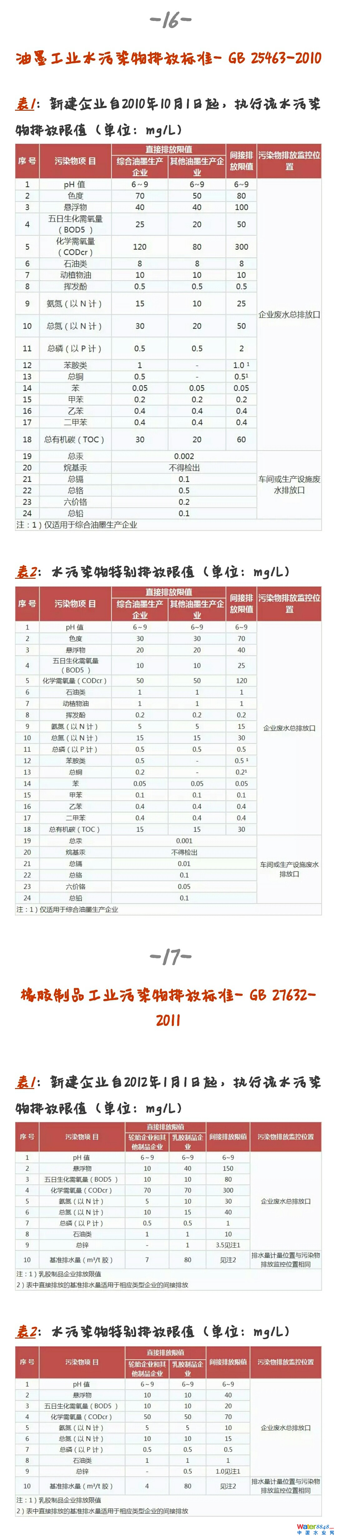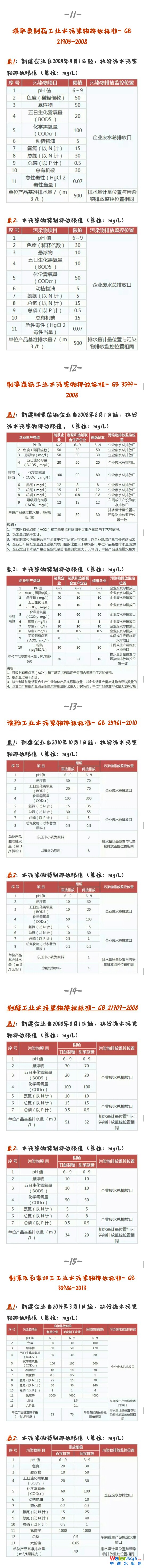 17個(gè)行業(yè)水污染排放標(biāo)準(zhǔn)大全