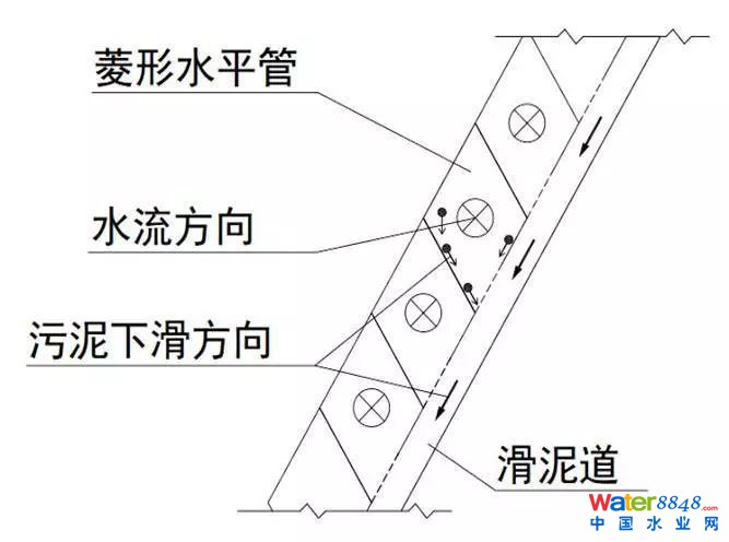 水平管單管為菱形管,管底側(cè)向設(shè)有排泥口,實現(xiàn)泥水及時分離。