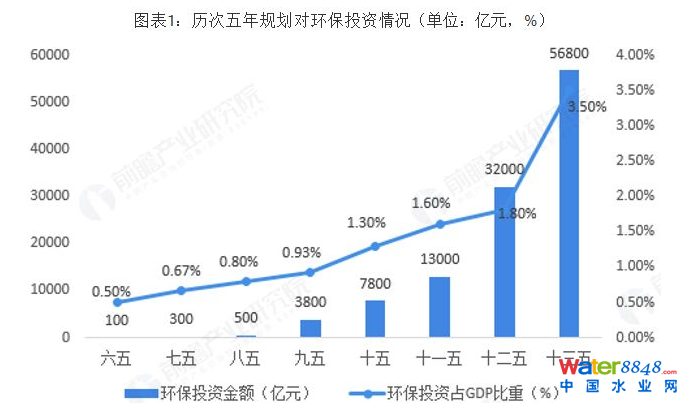 改革開放以來,我國經(jīng)濟快速發(fā)展,綜合國力顯著增強,為持續(xù)發(fā)展,對環(huán)境保護的投入不斷增加。歷年來五年規(guī)劃對環(huán)保投資不斷增加,“九五”期間,我國環(huán)保投入達(dá)3600億元,環(huán)保投入占GDP的比例首次超過1%。“十五”期間,環(huán)保投入約占到GDP的1.3%。“十二五”期間,環(huán)保投入的比例進(jìn)一步增大。環(huán)保投資力度的不斷加大推動我國環(huán)保產(chǎn)業(yè)不斷提升。