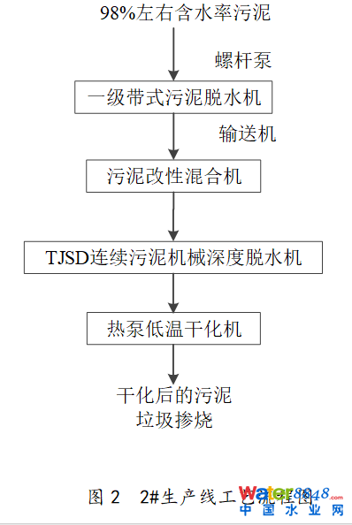 2018年11月,污水廠污泥新增焚燒出路。為此,新增1套熱泵低溫干化設(shè)備,形成分別以填埋和焚燒為最終處置目標(biāo)的工藝路線。