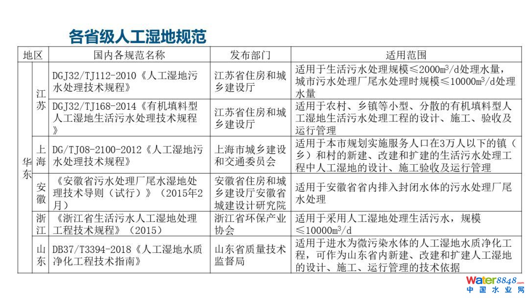 簡析國內各地區(qū)人工濕地相關規(guī)范/規(guī)程