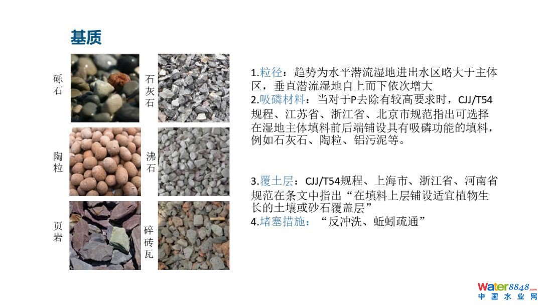 基質部分,一些規(guī)范對于覆土層必要性問題及緩解堵塞措施兩個方面缺乏全面的了解。濕地中植物可以直接生長在基質中,無需外填土壤。而緩解堵塞措施中反沖洗僅在實驗室模型中將人工濕地看做“濾池”進行論證,蚯蚓疏通或其它后期修復措施對于緩解堵塞效果較差,在實際應用中運用較少。
