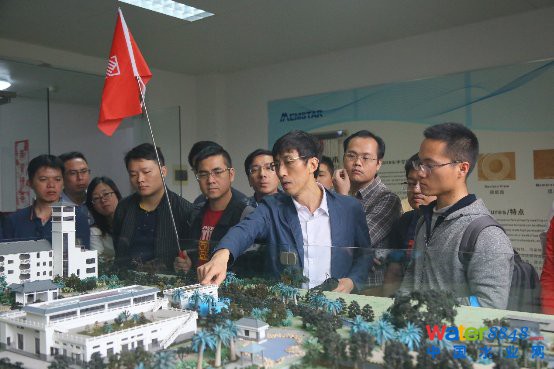 圖為雍文彬副總經(jīng)理為學(xué)員詳細(xì)介紹京溪水廠平面及剖面構(gòu)成。