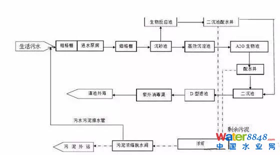 占地540畝,南北長750米,東西寬480米,初始日處理規(guī)模50萬噸。與2014年新建10萬噸擴規(guī)工程,擴建項目由上海巴安水務股份有限公司采用BT模式投資建設。