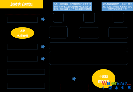 考慮到工期緊張,全部工程完工需要時間,因此,又根據需要擬定了2018年底必須完成的項目清單,包括了治污工程必須完工的工程范圍、優(yōu)先實施的補水工程以及一體化處理設施工程等內容。最終于2018年底前實現了黑臭水體整治“初見成效”的目標,9條黑臭河涌水質檢測全部滿足要求。