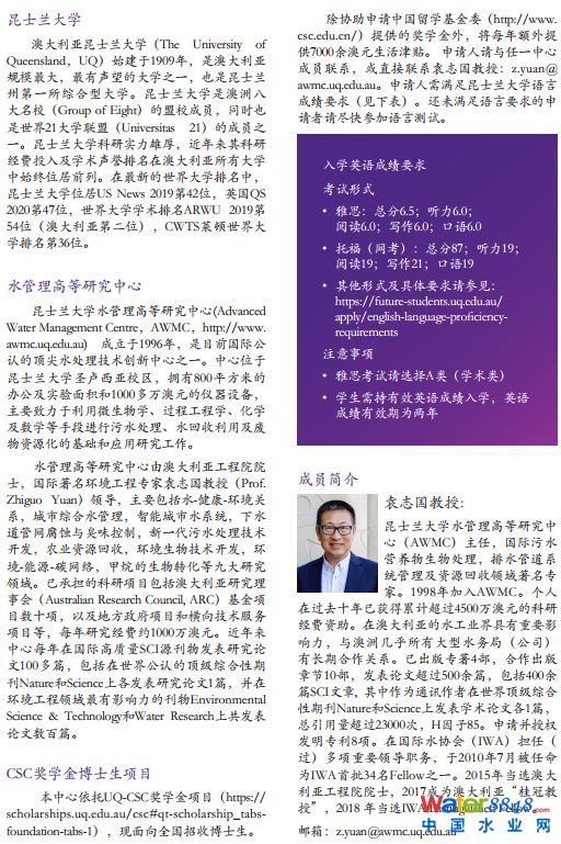 澳大利亞昆士蘭大學(xué)水管理高等研究中心招CSC資助博士生