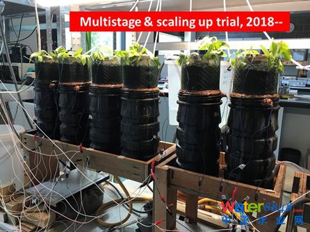 近年來(lái),在此基礎(chǔ)上研究開(kāi)發(fā)把微生物燃料電池嵌入人工濕地中,從而形成微生物燃料電池型人工濕地(CW-MFC),使其在污水處理的同時(shí),可以產(chǎn)電。同時(shí)我們?cè)谂c江蘇河馬井公司開(kāi)發(fā)模塊化人工濕地,打破人工濕地建造大興土木的格局,打造人工濕地產(chǎn)品化,集約化的新格局。