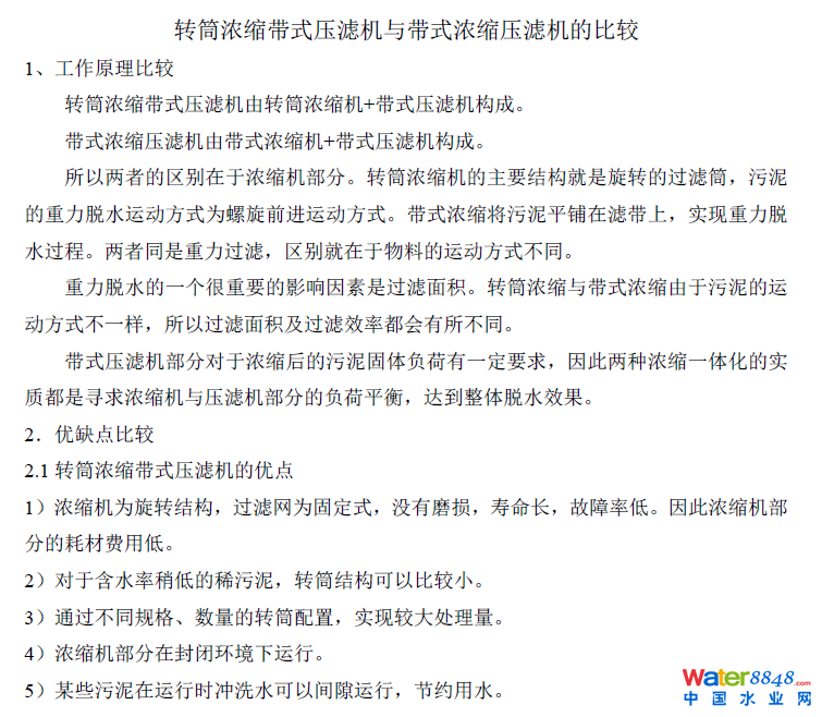 轉(zhuǎn)筒濃縮壓濾機與帶式濃縮壓濾機的比較 污泥脫水用臥螺離心機與帶式壓濾機的比較 疊螺脫水機與帶式壓濾機的比較