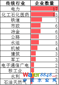 共涉及 14 個細分行業(yè):電力、電子通信廣電、公路、核工業(yè)、化工石化醫(yī)藥、機械、建筑、軍工、石油天然氣、市政、水利、水運、鐵道、冶金。其中,電力行業(yè)企業(yè)最多,有 17 家;其次為石油化工醫(yī)藥行業(yè),有 15 家企業(yè),鐵道行業(yè)居第三,有 7 家企業(yè)。