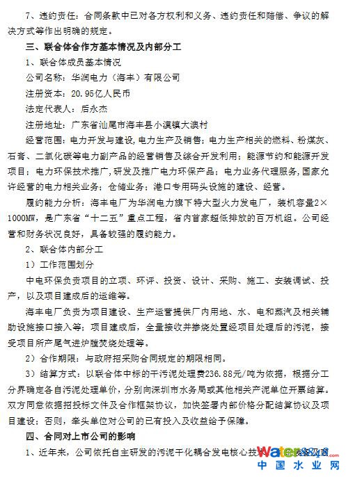 海豐電廠負(fù)責(zé)為項目建設(shè)、生產(chǎn)運(yùn)營提供廠內(nèi)用地、水、電和蒸汽及相關(guān)輔助設(shè)施接口接入等;項目建成后,全量接收并摻燒處置經(jīng)項目處理后的污泥,接受項目所產(chǎn)尾氣進(jìn)爐膛焚燒處理等。
