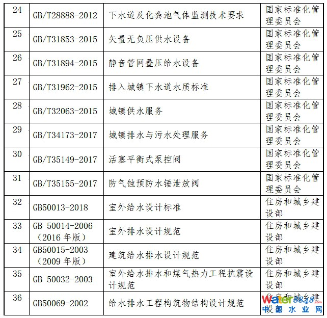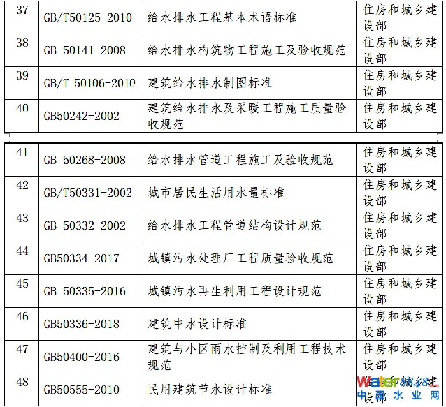 現(xiàn)行給水排水國(guó)家標(biāo)準(zhǔn)名錄 來源:中國(guó)城鎮(zhèn)供排水協(xié)會(huì)