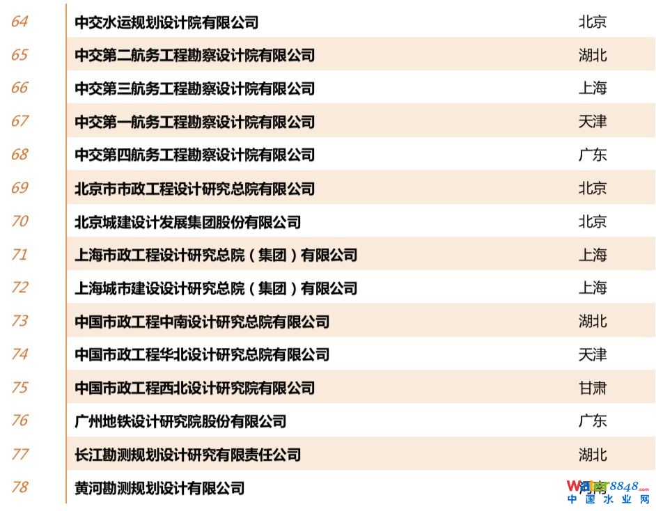 分別是:航天建筑設(shè)計研究院、長江勘測規(guī)劃設(shè)計研究有限責(zé)任公司、中國市政工程中南設(shè)計研究總院、中設(shè)設(shè)計集團(tuán)、中鐵二院工程集團(tuán)。