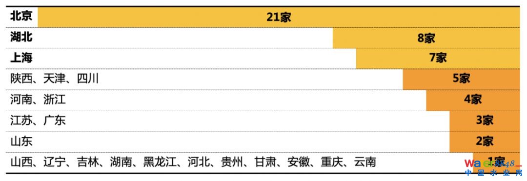 從區(qū)域分布來看,注冊地在北京的綜甲院最多(21家);其次是湖北(8家)再次是上海(7家)。