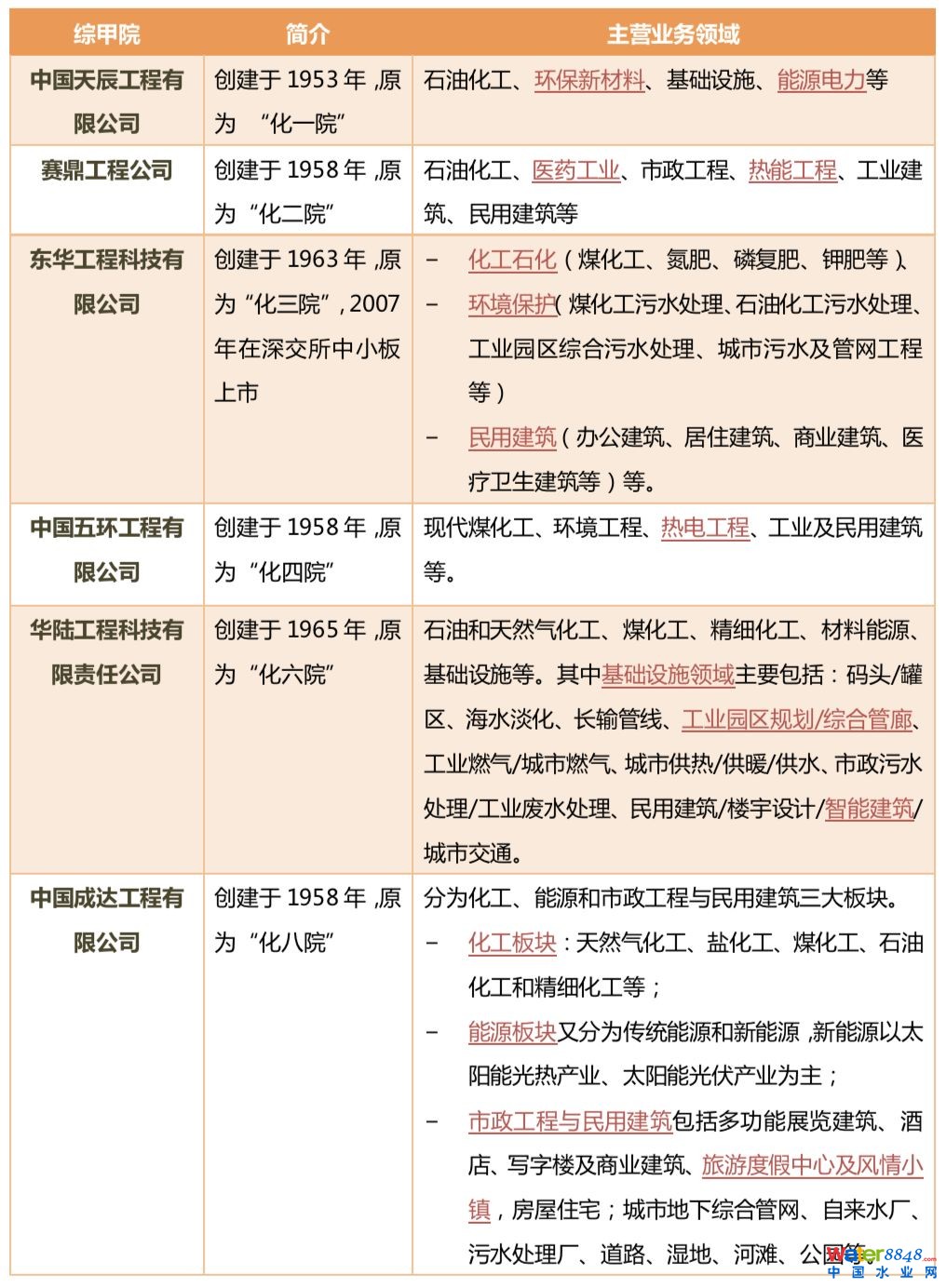 以下6家綜甲院均為中國化學(xué)工程股份有限公司全資子公司。