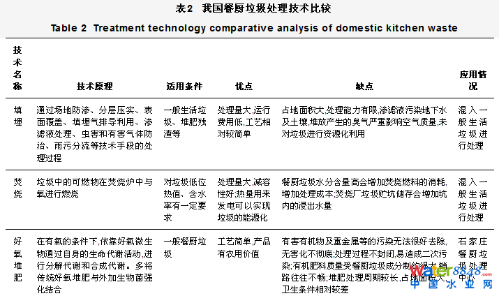 2 我國餐廚垃圾特性及無害化處理技術(shù)