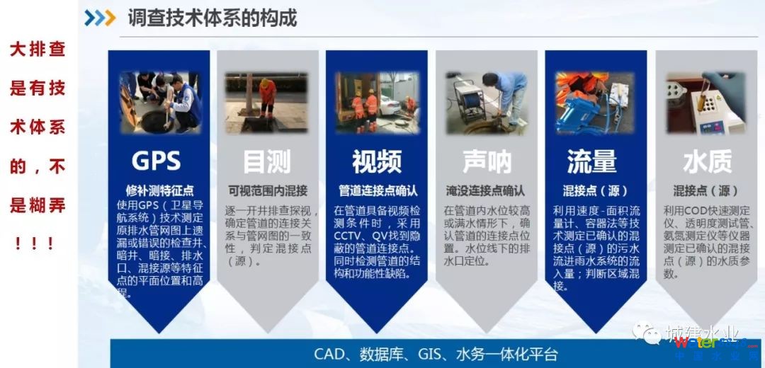第四,一定要做實(shí)系統(tǒng)排查,這是“提質(zhì)增效”的前提:查清、查準(zhǔn)問題是為了“對(duì)癥下藥”,特別是黑臭水體整治初期一定有重點(diǎn)、有針對(duì)性地開展排水管網(wǎng)問題的排查;以發(fā)現(xiàn)關(guān)鍵問題、影響大的問題為突破口,先重點(diǎn),后全面。