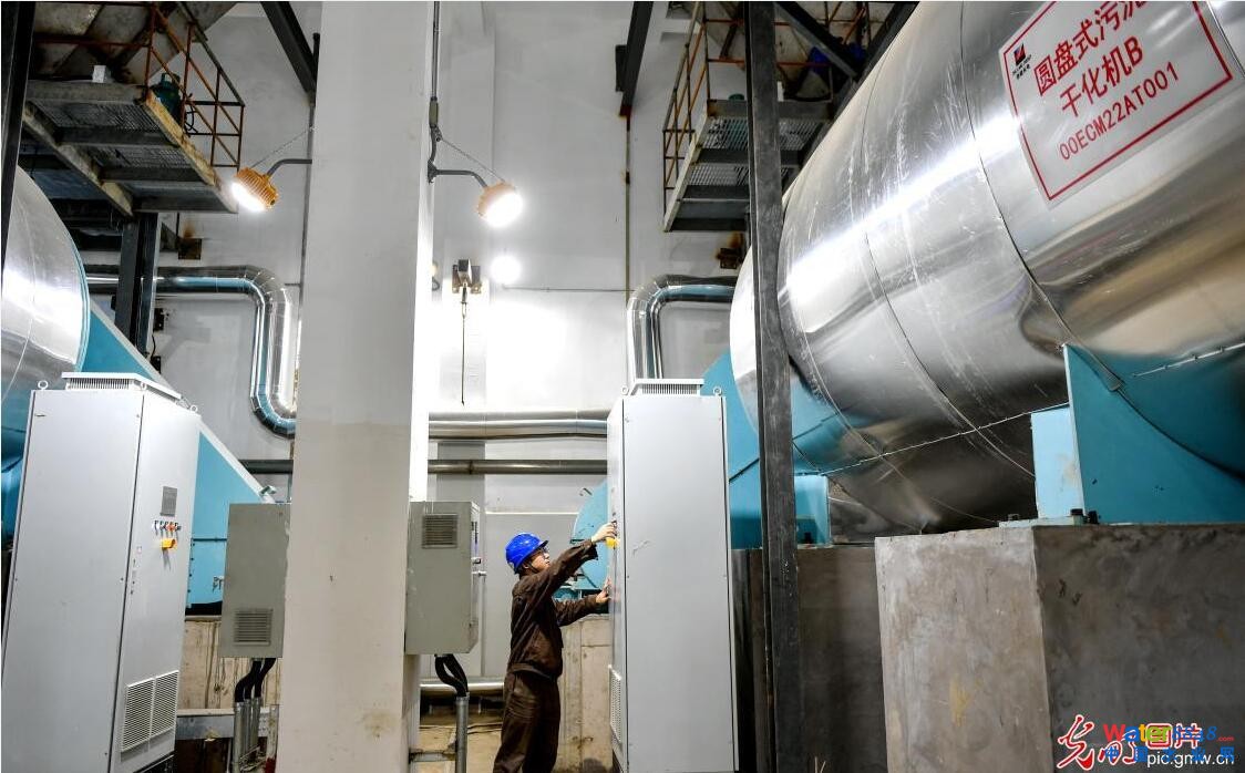 - 2019年12月30日,浙能長(zhǎng)興發(fā)電有限公司燃煤耦合污泥發(fā)電項(xiàng)目現(xiàn)場(chǎng),技術(shù)人員正在進(jìn)行生產(chǎn)作業(yè)。該項(xiàng)目是國家級(jí)燃煤耦合生物質(zhì)發(fā)電技改試點(diǎn)項(xiàng)目,使用蒸汽干化污泥后耦合發(fā)電,并利用超低排放裝置進(jìn)行氣體凈化,項(xiàng)目每天可處理污泥200噸。