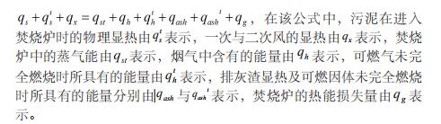 為了分析污泥干化焚燒系統(tǒng)的運行工況,本文構(gòu)建了該系統(tǒng)的能量及物料平衡模型,將進量一定條件下,對污泥進行干化時所需蒸發(fā)的水分流量利用公式表示為: