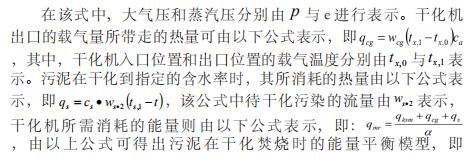 在該公式中,蒸發(fā)水分的流量由 wskm 表示,污泥經(jīng)干化后所具有的含水率則由 s•1 f 表示。對這些水分進行蒸發(fā)所需的能量可由公式表示為: