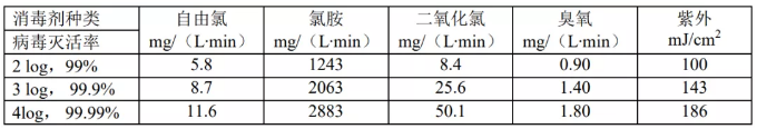 表1. 不同消毒劑病毒滅活的CT值和劑量