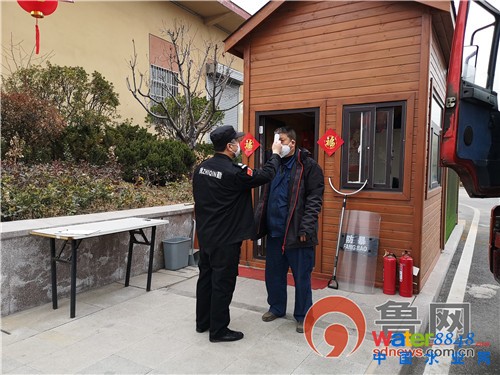 環(huán)境公司張村河水務(wù)在門禁處測體溫(拍攝:李凱)