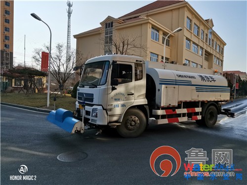 環(huán)境公司團島污水處理廠高壓清洗車在廠區(qū)內(nèi)噴灑消毒藥劑 (攝影:紀(jì)桓尚