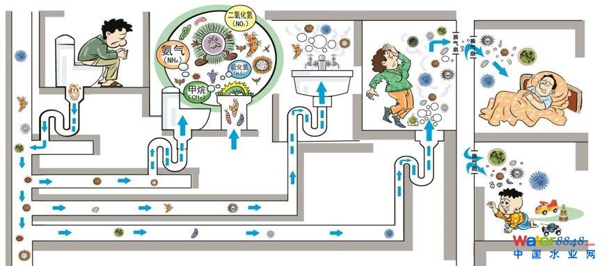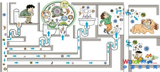 圖 臭氣、細(xì)菌、病毒通過排水系統(tǒng)的傳播