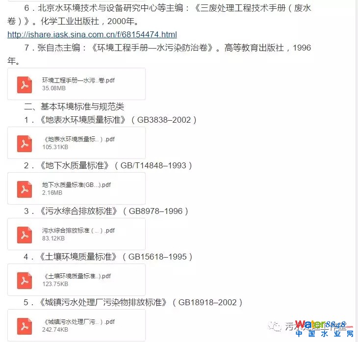 污水處理設(shè)計的手冊 規(guī)范 標(biāo)準(zhǔn)等 來源:水環(huán)境與水生態(tài)