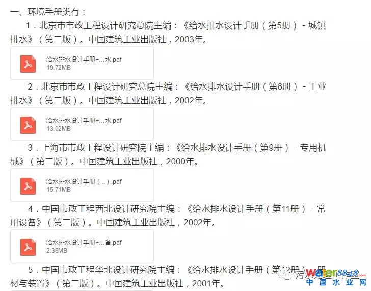 污水處理設(shè)計的手冊 規(guī)范 標(biāo)準(zhǔn)等