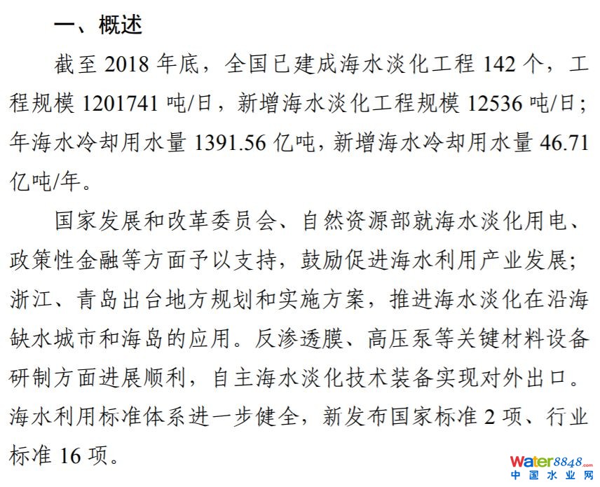 自然資源部發(fā)布《2018年全國(guó)海水利用報(bào)告》(全文)| 中國(guó)截至2018年底已建成海水淡化工程142個(gè) 日均產(chǎn)水120萬(wàn)噸……
