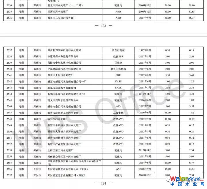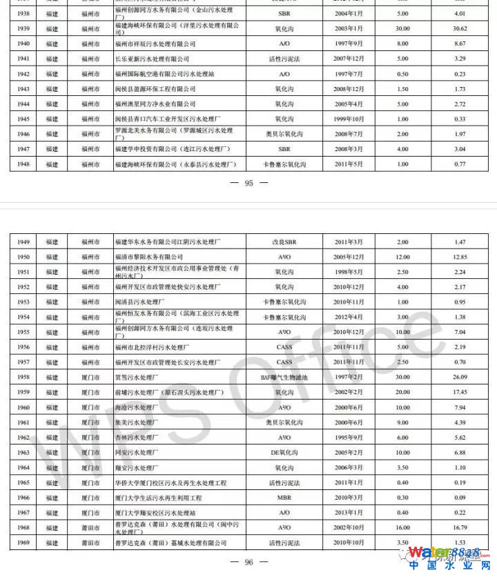 全國投運(yùn)城鎮(zhèn)污水處理設(shè)施清單