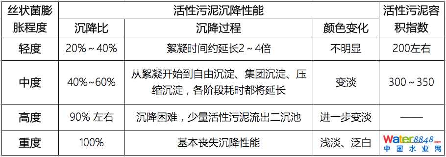 通過活性污泥沉降性能、容積指數(shù)判斷絲狀菌發(fā)生膨脹的程度: