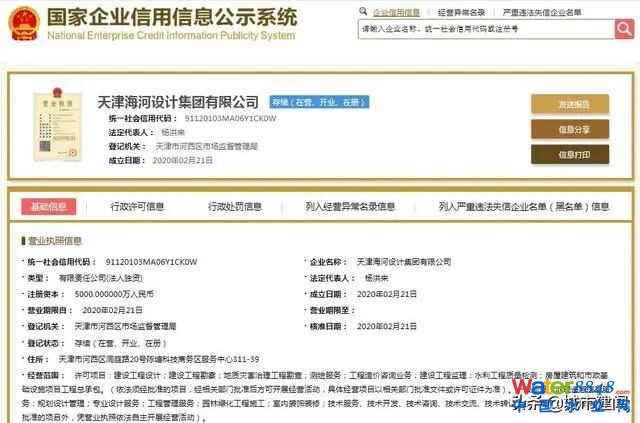 近日,天津海河設(shè)計(jì)集團(tuán)有限公司完成工商注冊(cè)登記,并拿到了工商營業(yè)執(zhí)照。