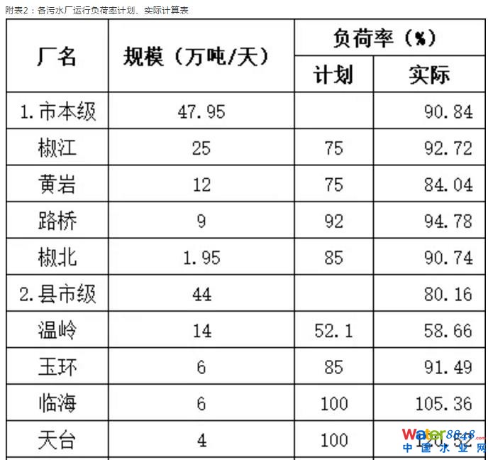 浙江省臺(tái)州市城鎮(zhèn)污水處理廠2018年度“三率”情況的通報(bào)