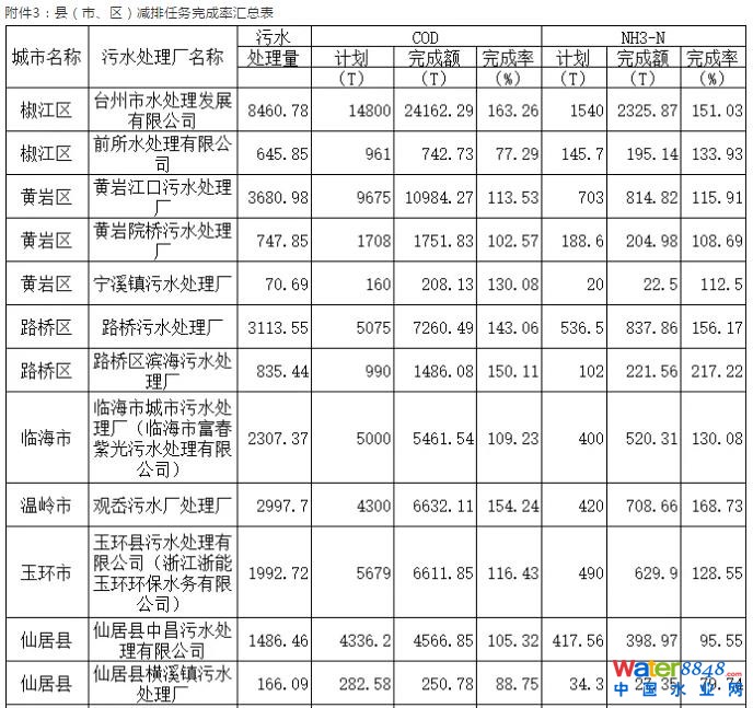 原標(biāo)題:浙江省臺(tái)州市城鎮(zhèn)污水處理廠2018年度“三率”情況的通報(bào)