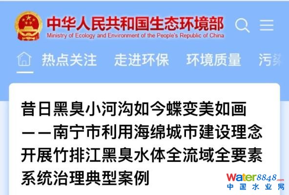 厲害了!南寧市竹排江黑臭水體系統(tǒng)治理入選生態(tài)環(huán)境部典型案例!