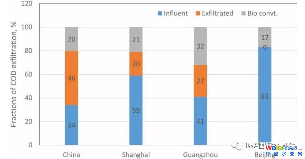 Fig. 2COD fate in the sewer systems of China, Shanghai, Guangzhou, Tianjin and Beijing