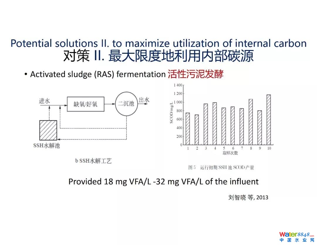 另一方面,為了滿足日趨嚴(yán)格的營(yíng)養(yǎng)物排放標(biāo)準(zhǔn)(例如,TN <10 mg-N/L),外加碳源被越來越普遍地實(shí)踐。以當(dāng)前市場(chǎng)價(jià)格粗略估計(jì), 一個(gè)100,000 m³/d的污水處理廠為購買相當(dāng)于20 mg-HAc/L醋酸(HAc), 每年花費(fèi)大約300萬元人民幣(約45萬美元)。購買碳和化學(xué)物質(zhì)正成為工廠運(yùn)營(yíng)沉重負(fù)擔(dān)。