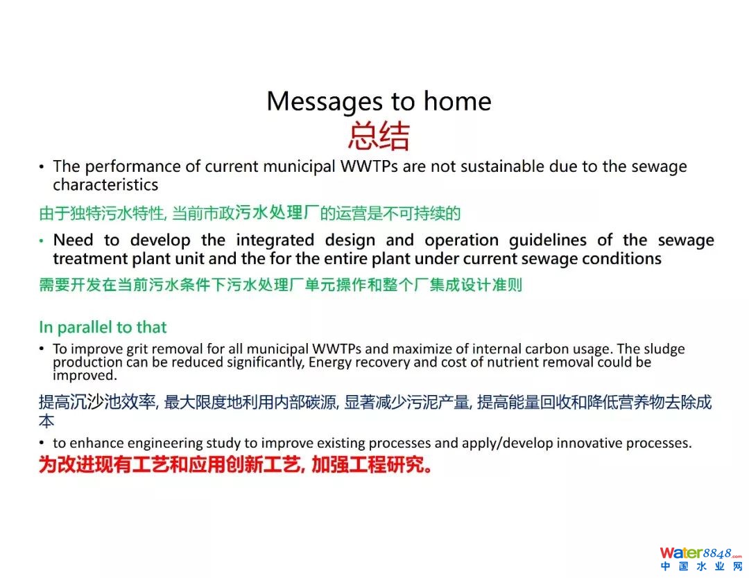 加強(qiáng)結(jié)果導(dǎo)向的應(yīng)用研究。要大力加強(qiáng)針對(duì)克服或解決中國(guó)污水水質(zhì)特性形成的技術(shù)瓶頸進(jìn)而實(shí)現(xiàn)高效污水處理目標(biāo)的可持續(xù)性研究與技術(shù)開發(fā),從開始就需要制定詳細(xì)的可行性研究計(jì)劃,針對(duì)污水特性,尤其是進(jìn)水ISS,和硝酸鹽還原速率等研究與實(shí)際測(cè)試,將有助于從技術(shù)確定是否需要初沉池。通過生化揮發(fā)物脂肪酸潛力(BVFAP)等指標(biāo)測(cè)試可用于評(píng)估初沉污泥和活性污泥發(fā)酵的可行性。目前看來,現(xiàn)在針對(duì)實(shí)際水質(zhì)特征條件下的污水廠設(shè)計(jì),針對(duì)解決獨(dú)特中國(guó)污水水質(zhì)相關(guān)的市政污水處理現(xiàn)實(shí)問題的研究仍然相對(duì)薄弱。最近幾年中國(guó)在水科學(xué)研究方面取得了出色的進(jìn)步,現(xiàn)在也正是時(shí)候,可進(jìn)一步加強(qiáng)在可持續(xù)市政污/廢水處理應(yīng)用領(lǐng)域的研究。