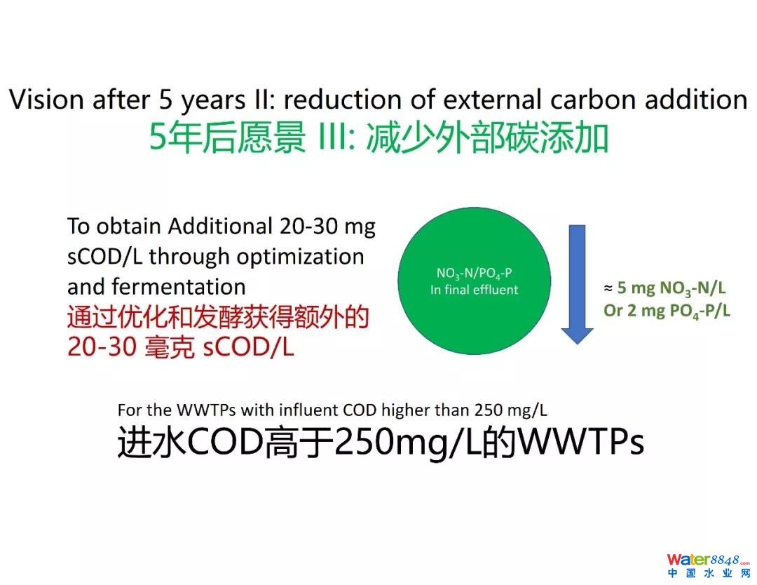 減少碳支出。目標(biāo)是通過污泥發(fā)酵獲得凈25 mg-COD/ L。這相當(dāng)于最終出水硝酸氮濃度降低了約5 mg-N/L,有助于實(shí)現(xiàn)在幾乎沒有或添加少量碳情況下實(shí)現(xiàn)出水總氮濃度少于10 mg-N / L。