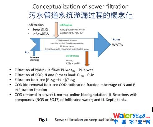 3. 研究?jī)?nèi)滲地下水/河水與污水的相互作用、以及外滲污水和地下水/河水的相互作用,以及這些相互關(guān)系對(duì)水環(huán)境和COD在管網(wǎng)里的生物降解的影響;